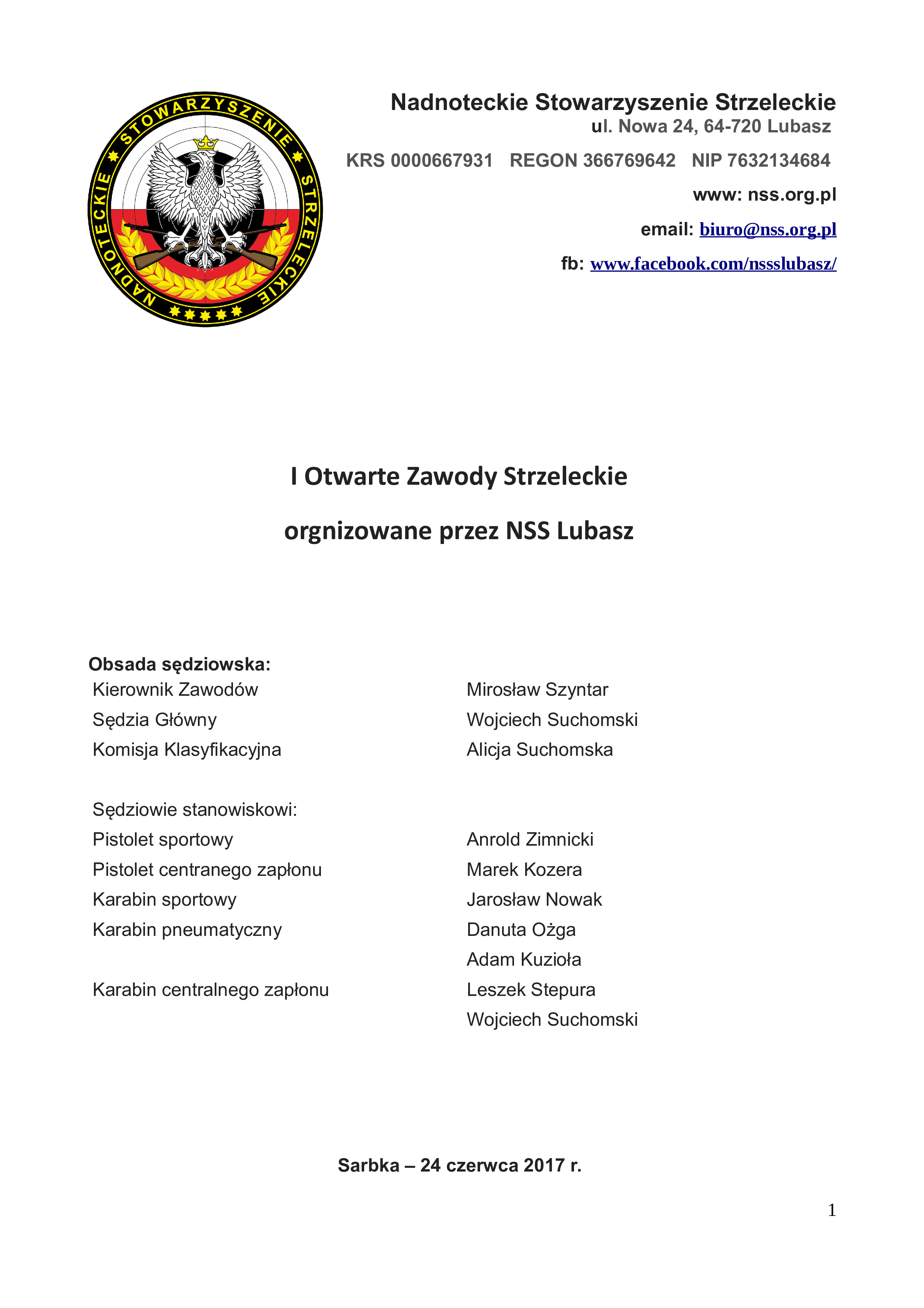 Pierwsze Otwarte Zawody Strzeleckie 24.06.2017 Nadnoteckie Stowarzyszenie Strzeleckie Otwarte Zawody Strzeleckie